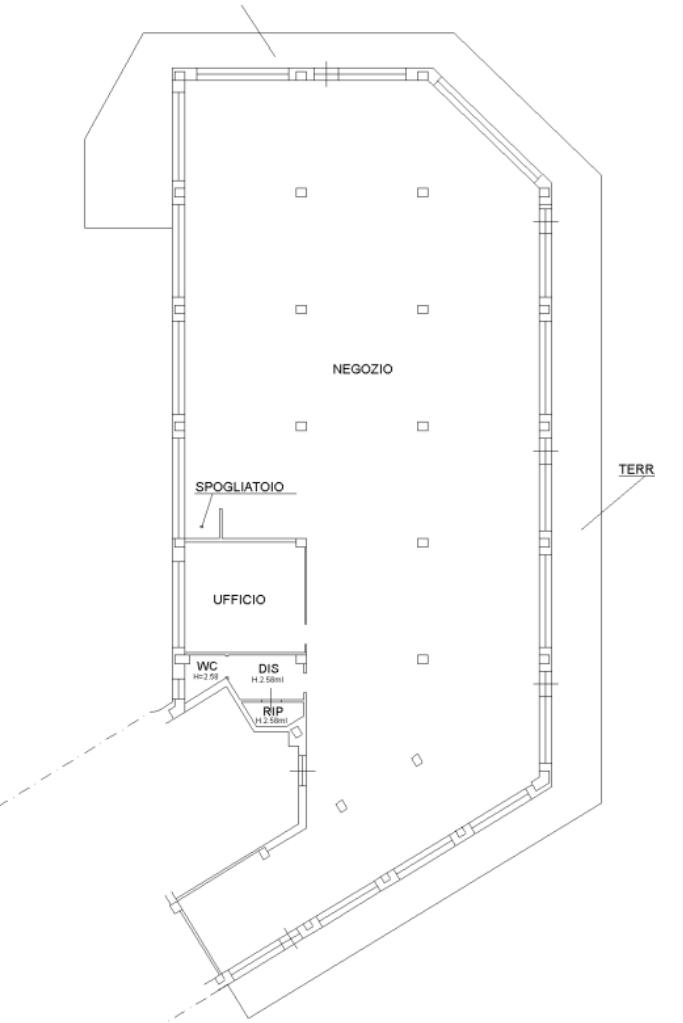 -piano terra: categoria c/1 di 570 mq con bagno, zona uffici e 10 vetrine.