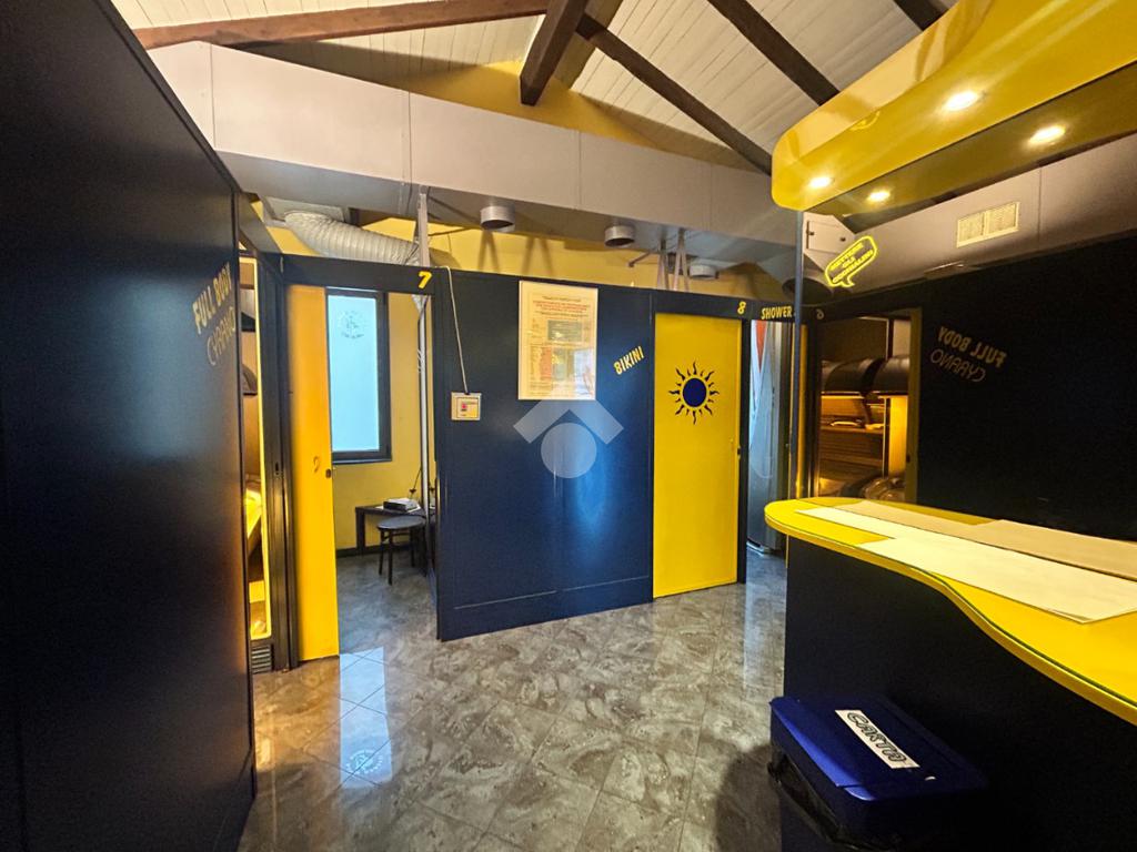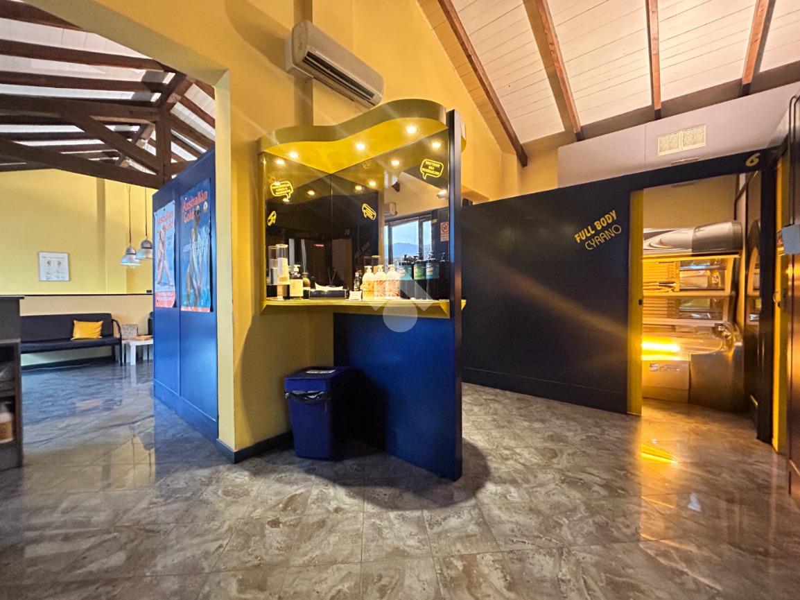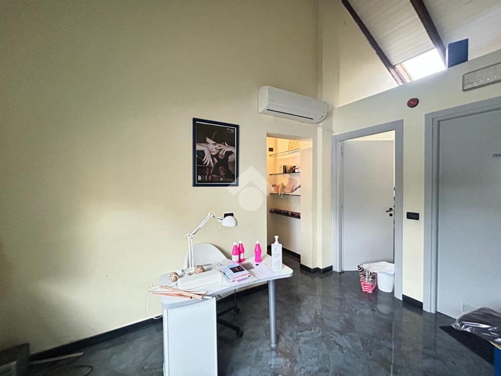 Vi è un ufficio con magazzino e vari servizi igienici con box doccia.