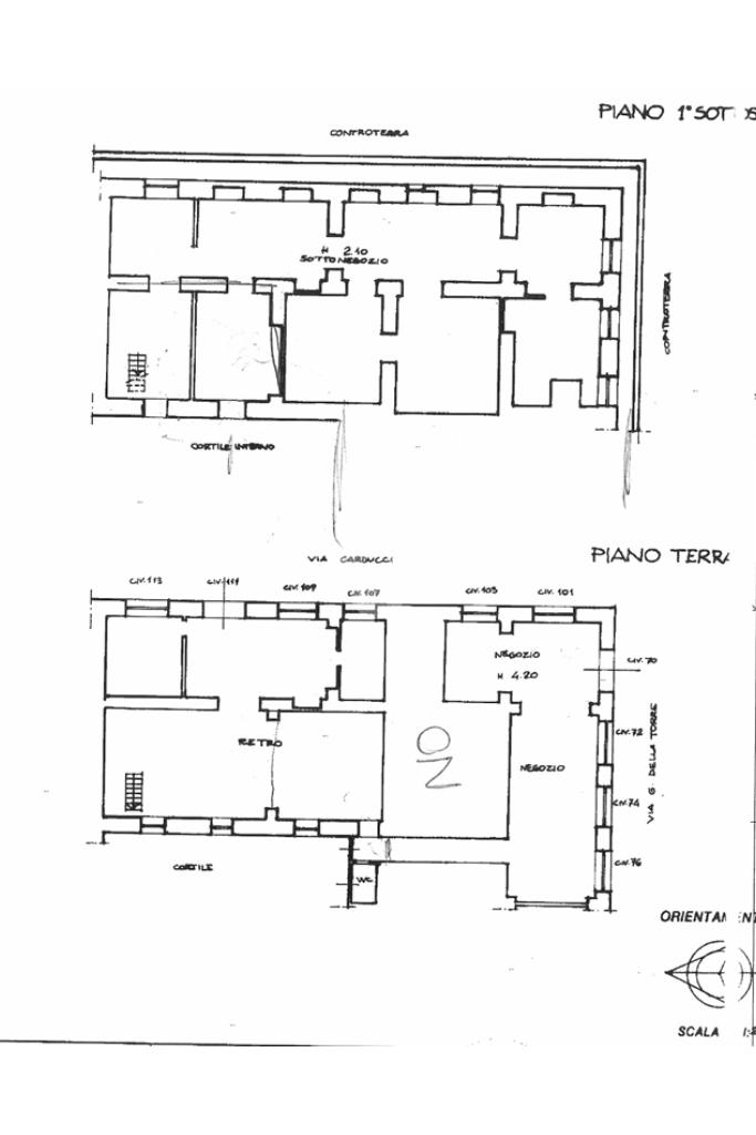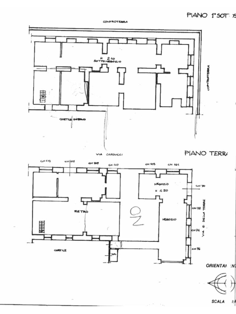 Al piano sottostrada, di pari metratura, è presente il magazzino con altezza 2,30 metri. L'accesso è consentito sia dall'ingresso del negozio e sia da una corte esterna in condivisione.
