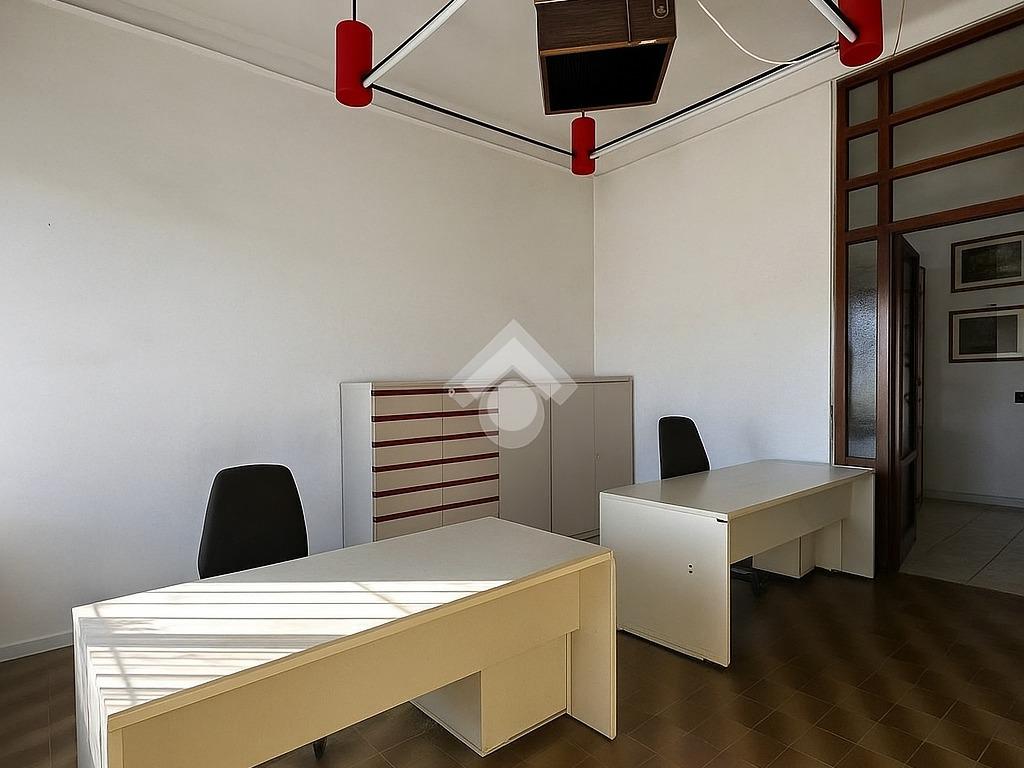Attualmente si suddivide in: spazioso ingresso al piano terra, ampia scala di accesso al piano primo, disimpegno, tre uffici, ampia zona open space e bagno finestrato.