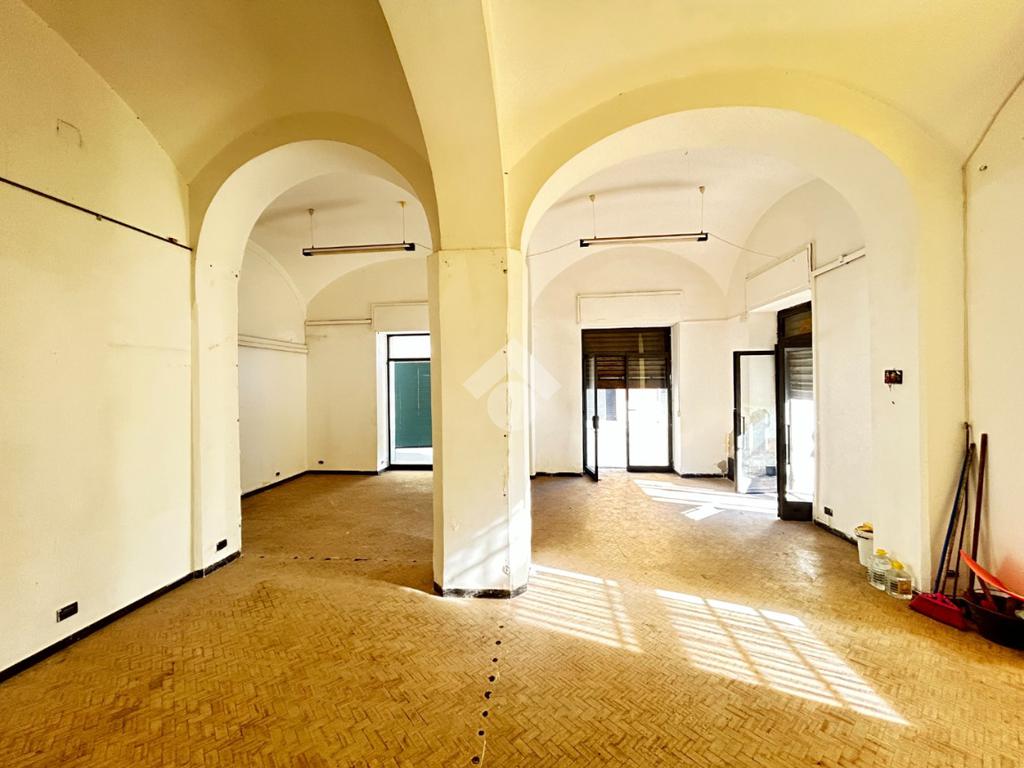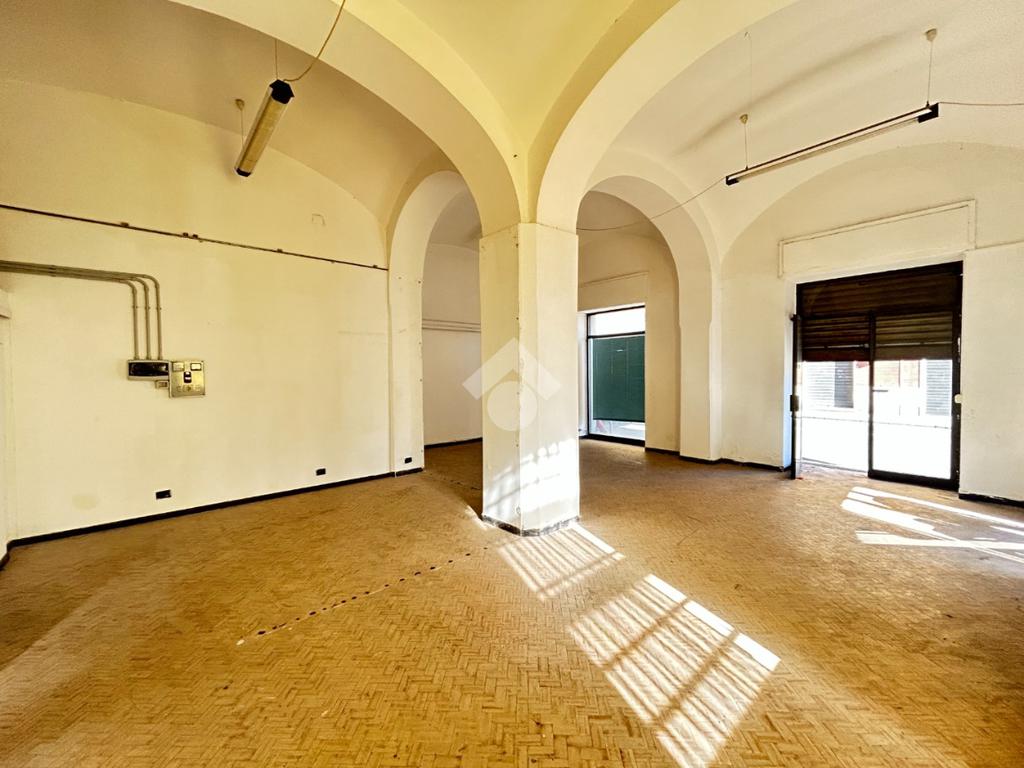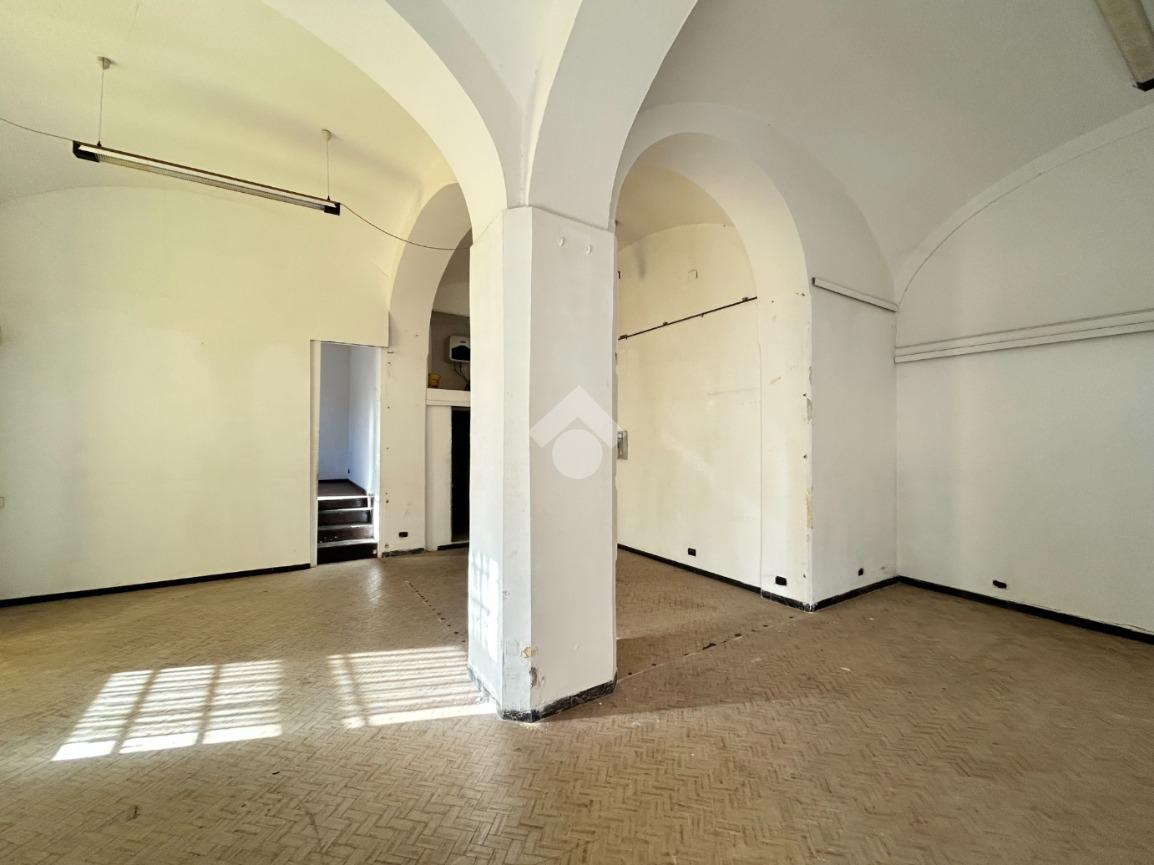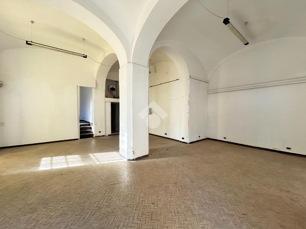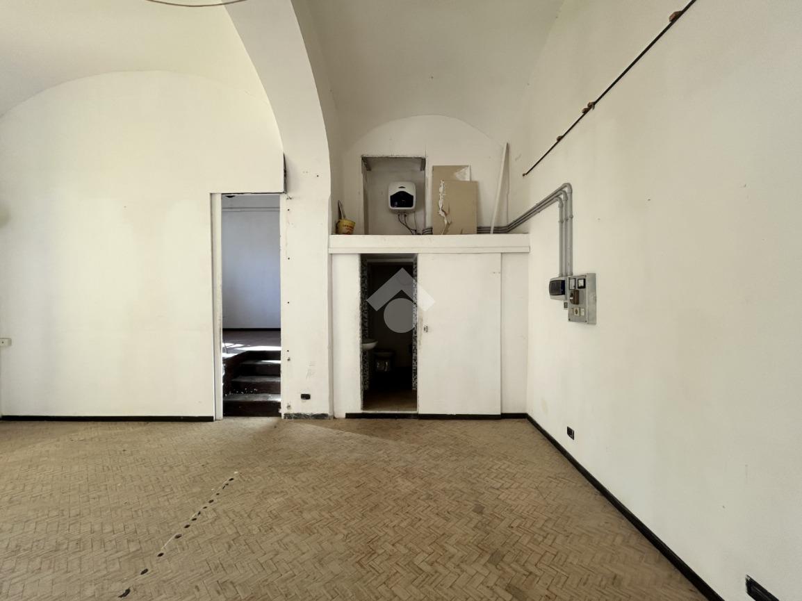 L'immobile consiste in un ampio open space con colonne e un secono locale rialzato.